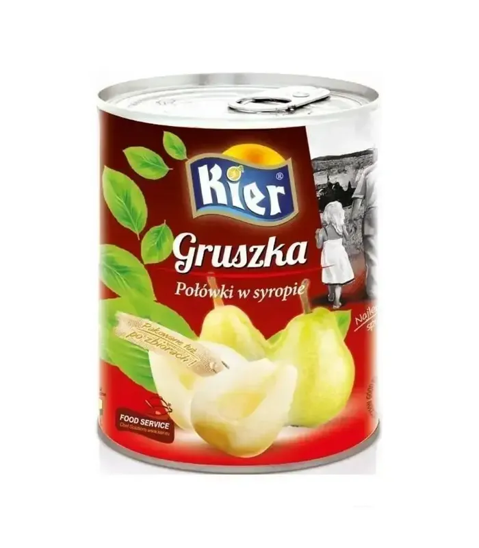 Груша в сиропі Kier 820 г — це соковиті, ніжні шматочки груші, збережені в легкому солодкому сиропі, які зберігають природний смак, аромат і текстуру фруктів. Продукт виготовлений з добірних стиглих груш і підходить як для професійного, так і для домашнього використання.