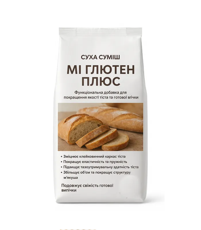 Суха суміш «МІ Глютен Плюс» – функціональна добавка для покращення якості тіста та готової випічки. Завдяки вмісту пшеничної клейковини і спеціально підібраних компонентів, суміш забезпечує стабільність процесу та високу якість готових виробів.
