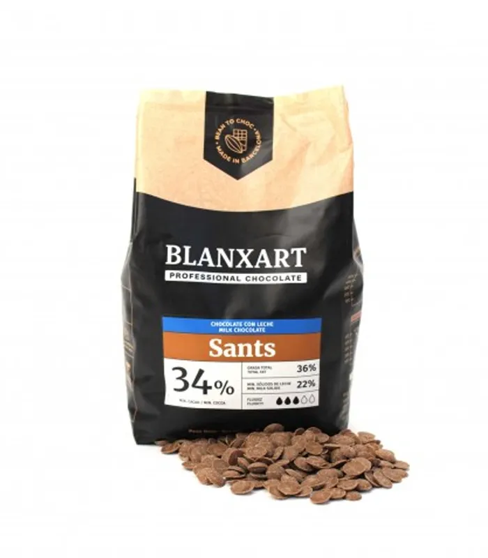 Шоколад молочный Sants Blanxart 34% — идеальный выбор для тех, кто ищет стабильный в работе молочный шоколад с натуральным составом и изысканным вкусом.